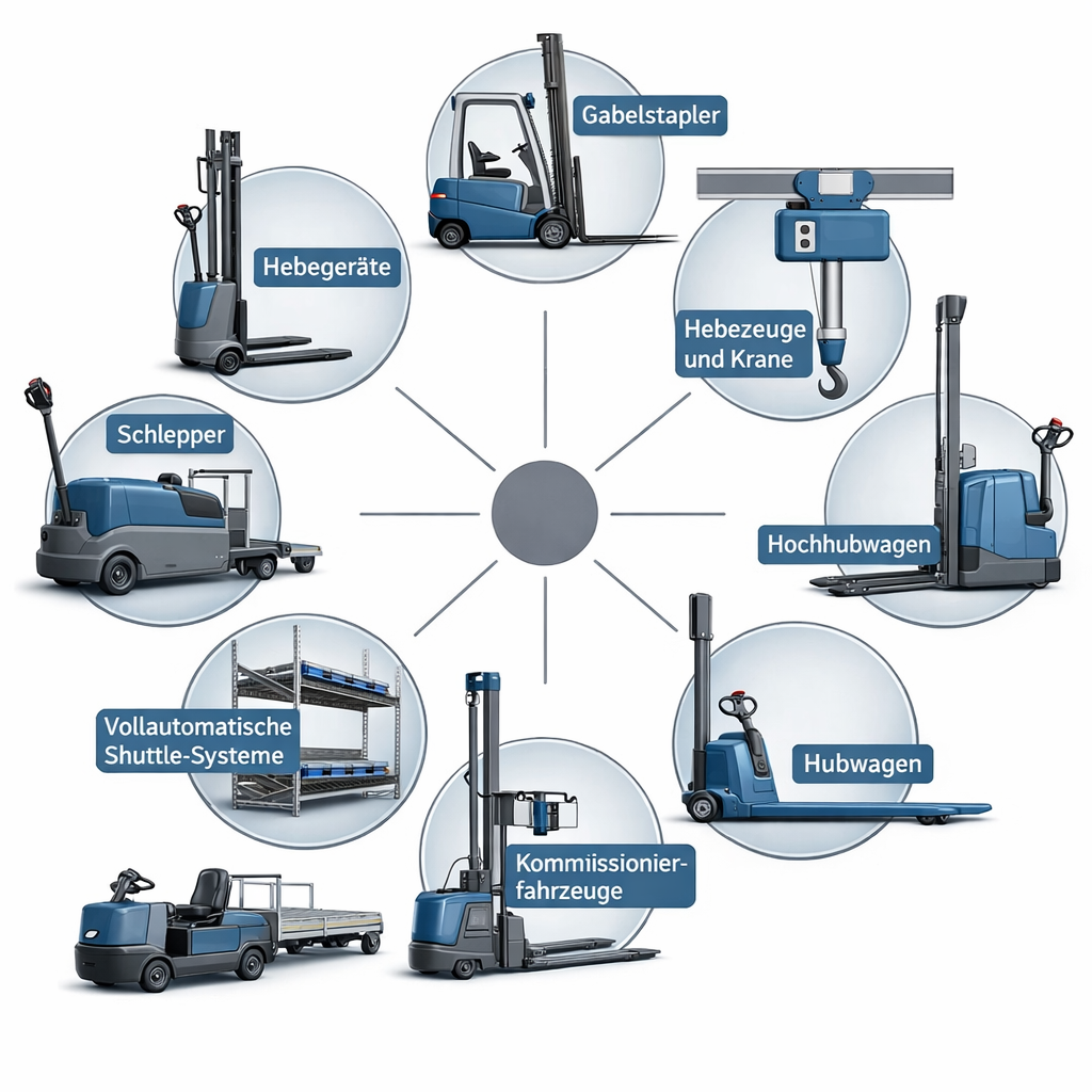 Spezialprüfungen für Flurförderzeuge (FFZ) wie Stapler, Elektroameisen, Hubwagen, Hubtische, Handstapler und Transportwagen nach DGUV Vorschrift 68.